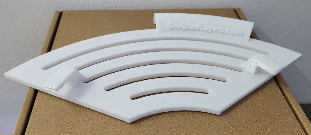 After test fitting, I realised if I placed the clip outboard of the cover, I could slide the cover under the overflow section of the pod. And the final form of the cover was born.