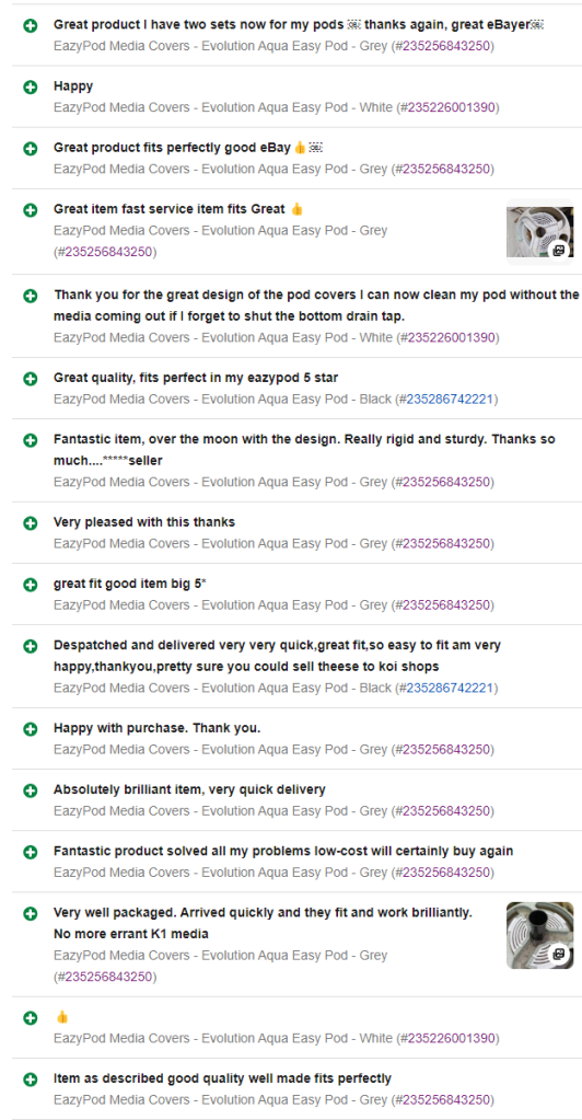 Once I began selling the Eazypod media covers, I received a lot of positive feedback from the Koi keeping community with several YouTube review. I will list links and images below. The only constructive feedback the covers received was from YouTuber Daveykoi, it was around the top band having some movement. The force of the water and media during the cleaning cycle is not enough to push the bridge up, as seen in a video posted below, so if you have this design do not worry! But perception of the product is important to me, so I updated the design to incorporate a central bridge as per Dave’s suggestion. Any further designs suggestions are always welcome and contact details are on the main page.